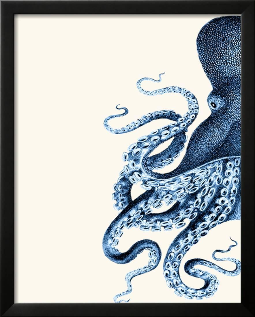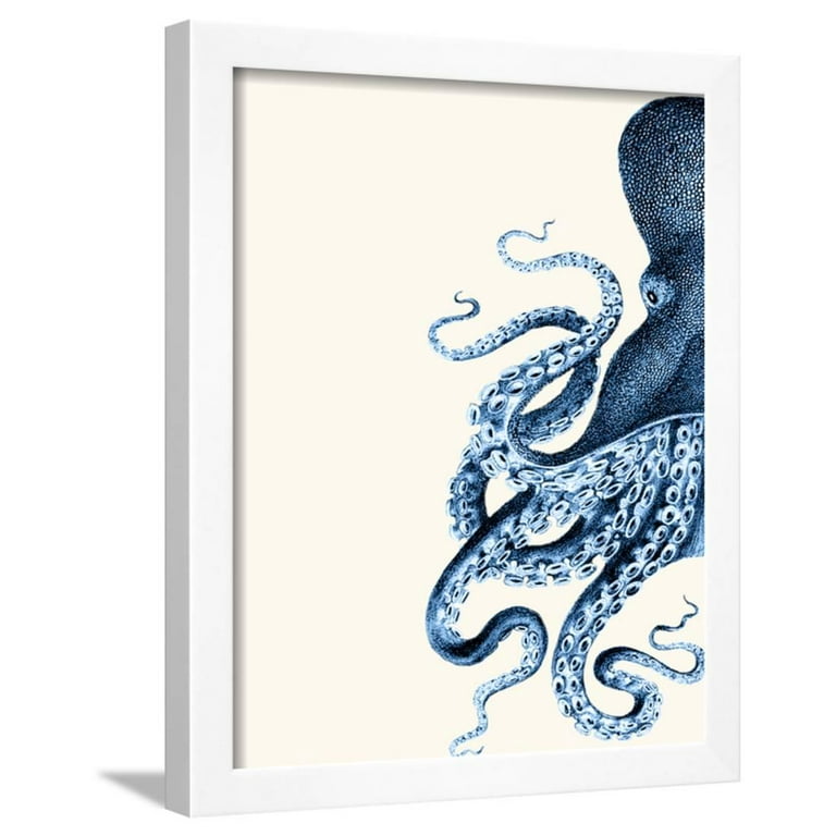 Octopus Navy Blue And Cream A Framed Print Wall Art By Fab Funky Walmart Com